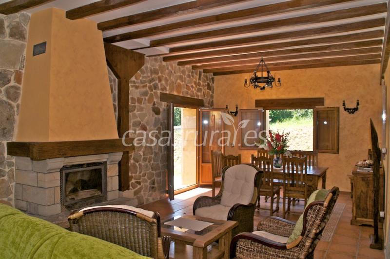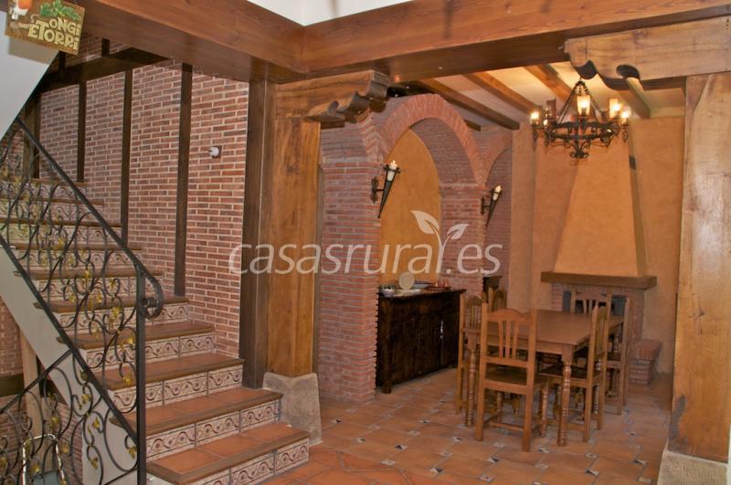 - La planta baja dispone de salón y comedor, ambos con chimenea donde podrán degustar platos típicos de nuestro valle. Alubias de nuestra huerta, cordero asado, bacalao al pil-pil y postres caseros con leche de nuestros caseríos.