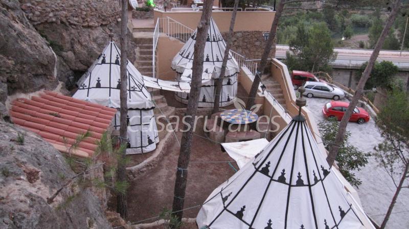 Capacidad para 48 pers. en alojamientos de 2 a 8 plazas: 2 Cabañas de Madera con baño, 3 Jaimas marroquíes, 3 Habitaciones, 1 Dormitorio y 4 Parcelas para Acampada.