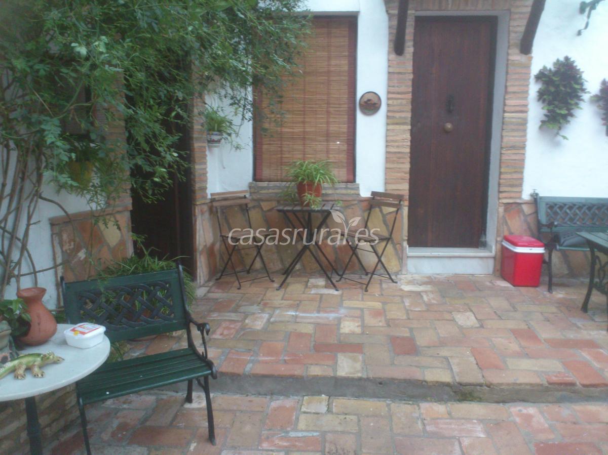 situado en patio tipico andaluz del centro de vejer costa de cocina comedor dormitorio un baño esculpido en roca natural con una gran bañera y ducha terraza en el patio.