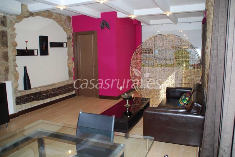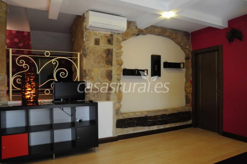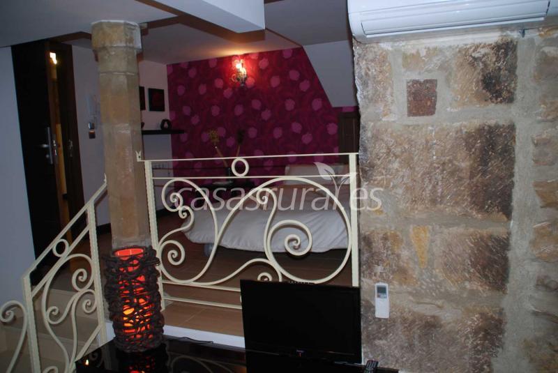 Los Apartamentos Fuente Redonda presentan una decoración moderna con elegantes detalles ornamentales de piedra. La cocina está equipada con fogones, microondas y cafetera.