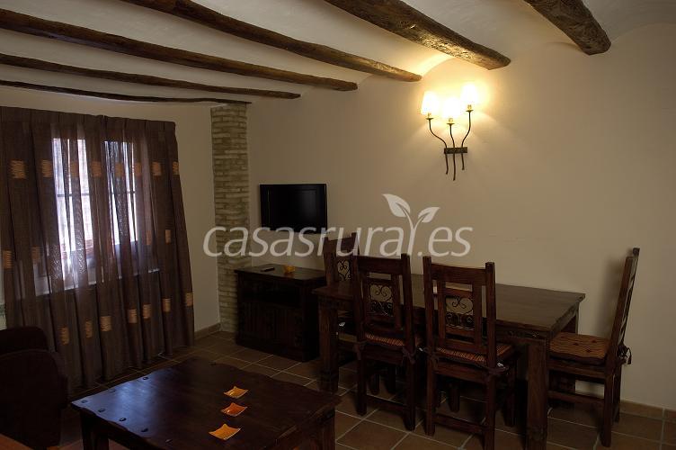 - Apartamento “El Solanar”. Ubicado en la parte alta de la casa, en los antiguoa graneros, consta de una planta baja donde nos encontramos con una sala de estar, cocina-comedor y aseo y en la planta superior, abuhardillada, se ubican una habitación de matrimonio, una habitación doble y cuarto de baño.