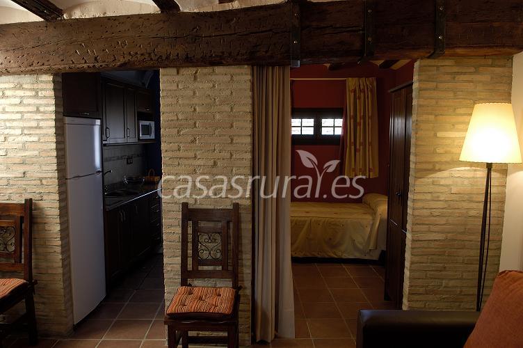 - Apartamento “El Refugio”. Situado en la planta baja, está adaptado para alojar a personas disminuídas salvando las barreras arquitectónicas. Cuenta en planta baja con una habitación doble, cocina, baño y otra habitación doble ubicada en la antigua bodega de la casa.