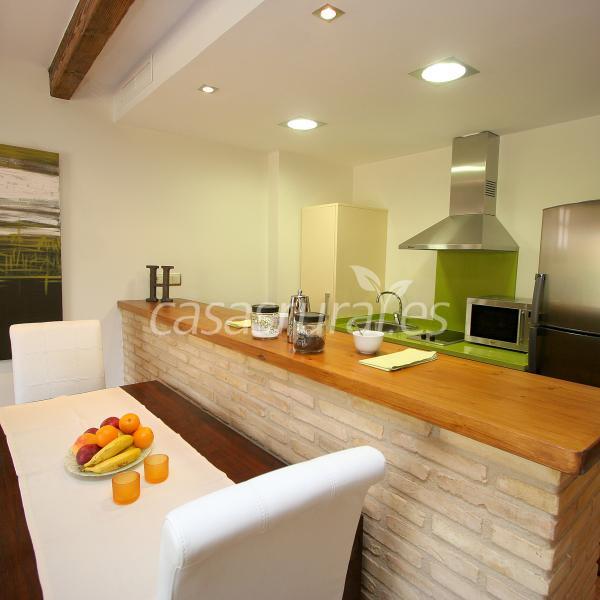 Salón con cocina totalmente equipada.