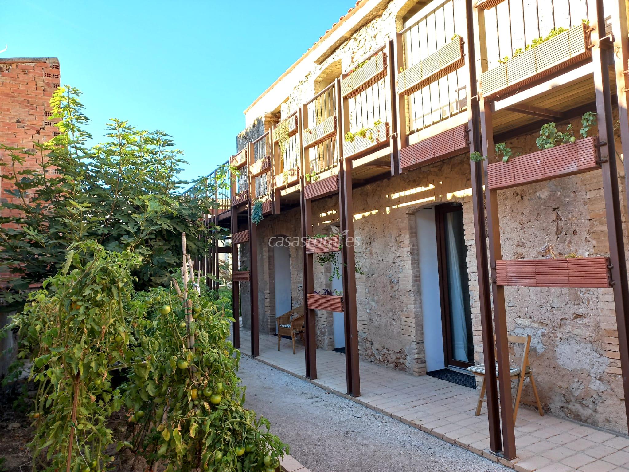 Alojamiento rural en modalidad de casa de pueblo compartida que cuenta con habitaciones con baño, comedor y cocina compartida entre las tres habitaciones y un jardín a disposición de los huéspedes.