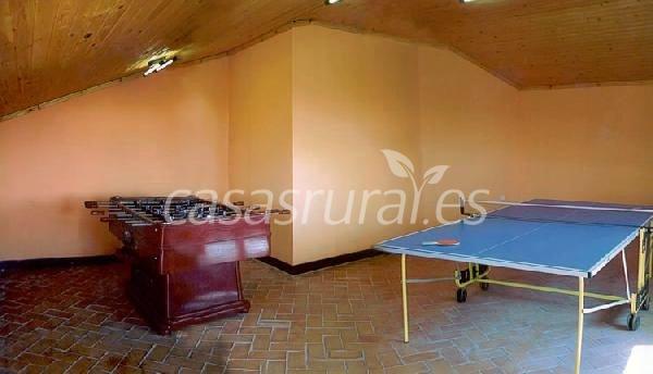 Sala de juegos con mesa de ping-pong y futbolín.