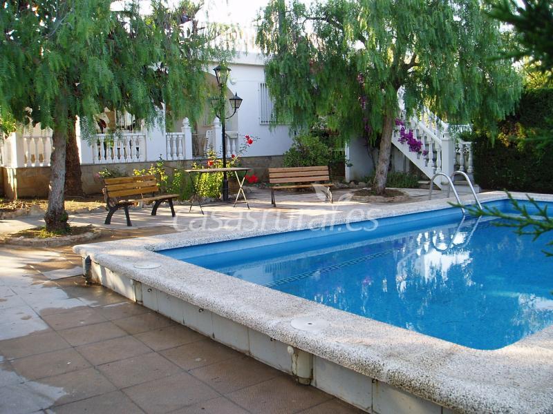 Casa mediterranea, a 50 m de la playa, casa con dos habitaciones dobles, y una individual, baño con ducha, chimenea, piscina privada, y barbacoa.