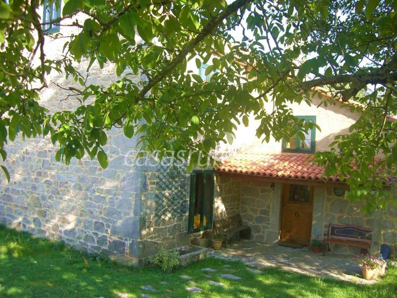 Acogedora y bonita casa de piedra. Rodeada de un extenso prado con árboles.