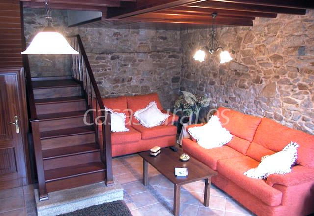 La casa dispone de 5 hab. (4 de matrimonio y 1 doble), 1 cama auxiliar, cuna, cocina completamente equipada (lavadora, lavavajillas, horno, microondas, cafetera, tostador, exprimidor, batidora, plancha..), comedor, 3 baños, 2 salones (uno de ellos con chimenea), tv, dvd, música, lecturas, juegos de mesa, juegos de niños, gran comedor rústico con horno de piedra-lareira-barbacoa, jardín de 1500 m2 con mobiliario de jardín, hórreo, lavadero, árboles, viña, un petroglifo y unas magníficas vistas sobre la ría. La casa se encuentra en una zona rural muy tranquila próxima al centro urbano de Rianxo (10 min. caminando), al paseo marítimo y a la playa anexa.