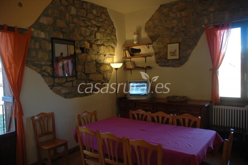 Es un casa de piedra de dos plantas, en la primera planta dispone de 2 habitaciones dobles, una habitación triple con 3 camas individuales, cuarto de baño muy grande, comedor luminoso con balcón y ventanas, con mesa de madera maciza extensible, cocina totalmente equipada (horno, cocina, microondas, frigorifico-congelador, sartenes, tostador, cafetera, turmix, utensilios de cocina, lavadora, etc.), tv, etc.