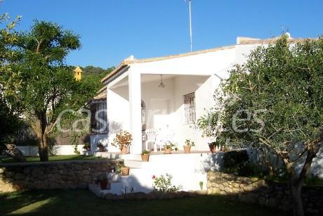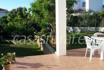 Chalet en el centro del pueblo, playa Los castillejos, a 40 metros de la playa y junto al parque natural La Breña, vivienda de 70m2 en parcela de 500m2 de jardín privado, con césped, gran arboleda y un aparcamiento, 2 dormitorios, amplio salón con chimenea, baño, cocina, totalmente equipado (ropa de cama, de baño,