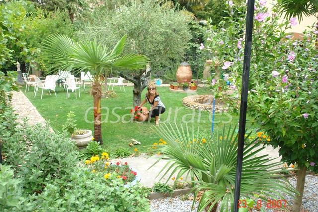Destaca su jardín rodeado de plantas y con una fuente de piedra.