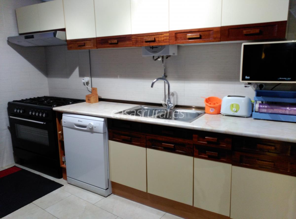 En la planta baja está el salón, comedor, aseo , cocina ( nevera, lavadora, microondas, tostadora, batidora...)y cocina de matanza con chimenea y leña gratis.