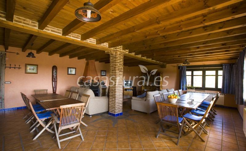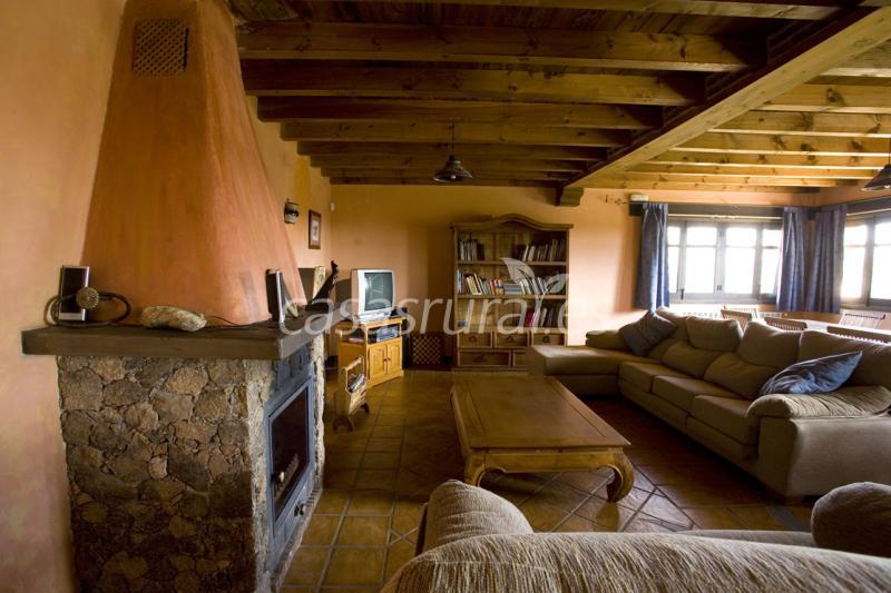 La planta baja alberga un luminoso salón de grandes dimensiones. Equipada al detalle (chimenea, televisión, vídeo, DVD, equipo musical, sugerente mobiliario, cómodos sillones...), la amplia estancia resulta muy adecuada para descansar al final de la jornada, para departir animadamente con los amigos o para la realización de actividades de grupo, cursos, seminarios y reuniones de todo tipo.