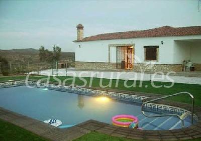 ,dos cuartos de baño, cocina, salón con office ,piscina exterior de 10x4 con sistema salino,parque infantil, porche con mobiliario de jardín, aire acondicionado y calefacción en toda la casa, chimenea, acceso a discapacitados,merenderos,barbacoa, aparcamiento ,