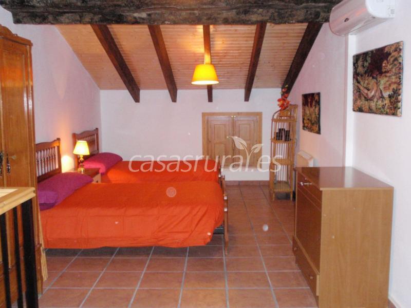 Está dividida en 3 plantas, en la planta baja está la cocina-comedor, el salón y un aseo. En la primera planta eatá la habitación de matrimonio, una individual, un baño con ducha y un patio de luces, y la segunda planta es una sala con el techo abuhardillado con 2 camas, un sofá-cama y otra habitación de matrimonio.