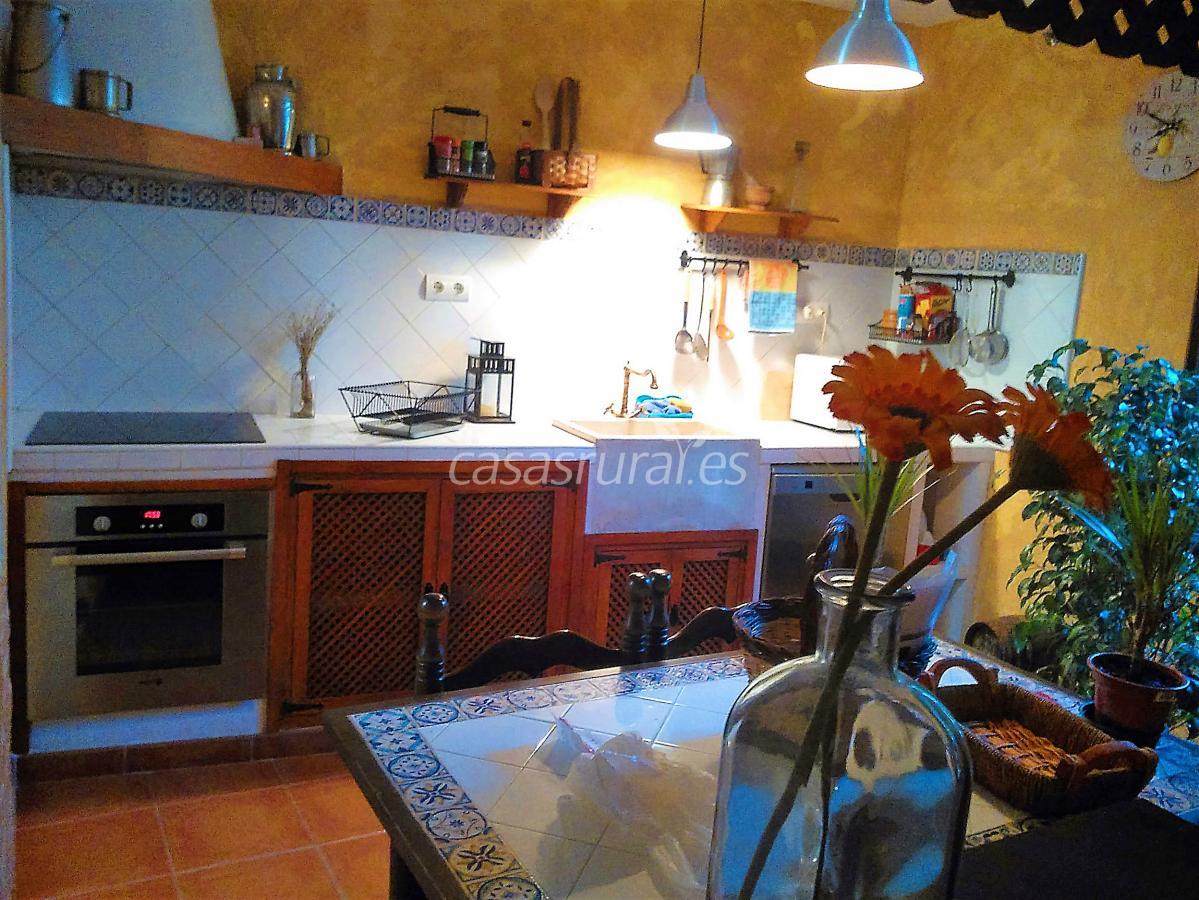 La Casa principal de alquiler para 8-10 personas cuenta con 5 habitaciones dobles, 3 cuartos de baño, cocina rústica totalmente equipada y gran salón con zona de estar con chimenea y zona de comedor con una mesa muy grande.