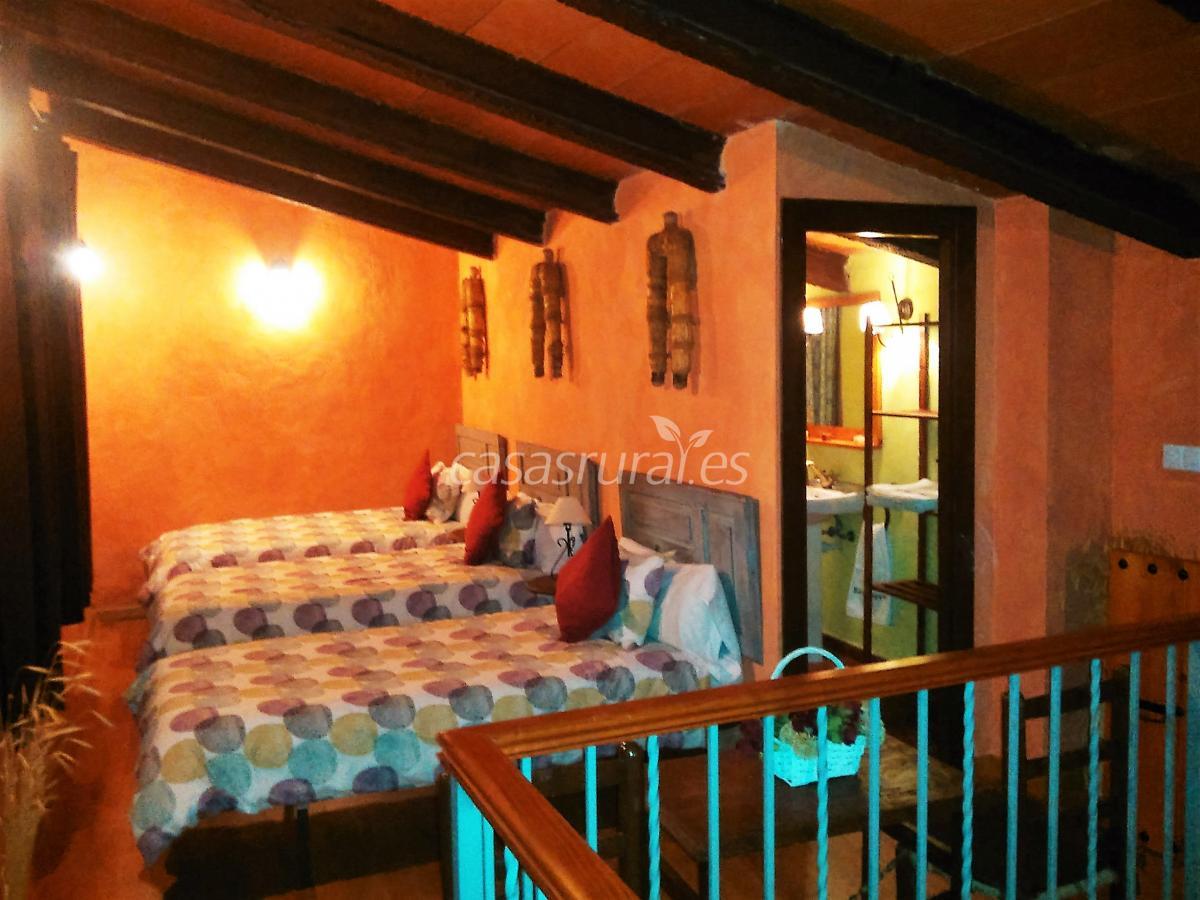 Auténtico alojamiento rural con encanto con posibilidad de reserva para 8-10 plazas o para 11-13 plazas, y que cuenta con 6 habitaciones, una de ellas triple, 2 grandes salones con chimenea y grandes mesas, 2 cocinas equipadas y 4 cuartos de baño completos, magnífica barbacoa en patio castellano privado con sillas, mesas de jardín, zona chill-out y piscina en verano.
