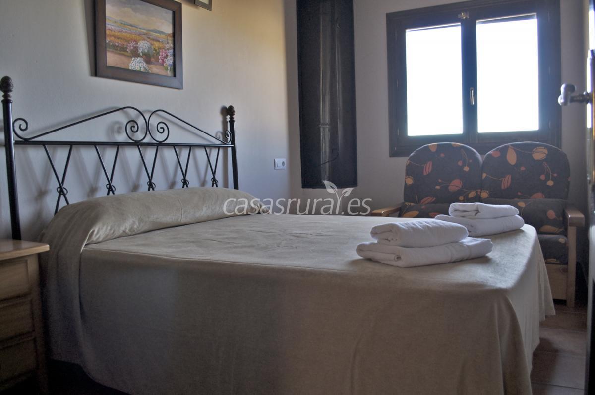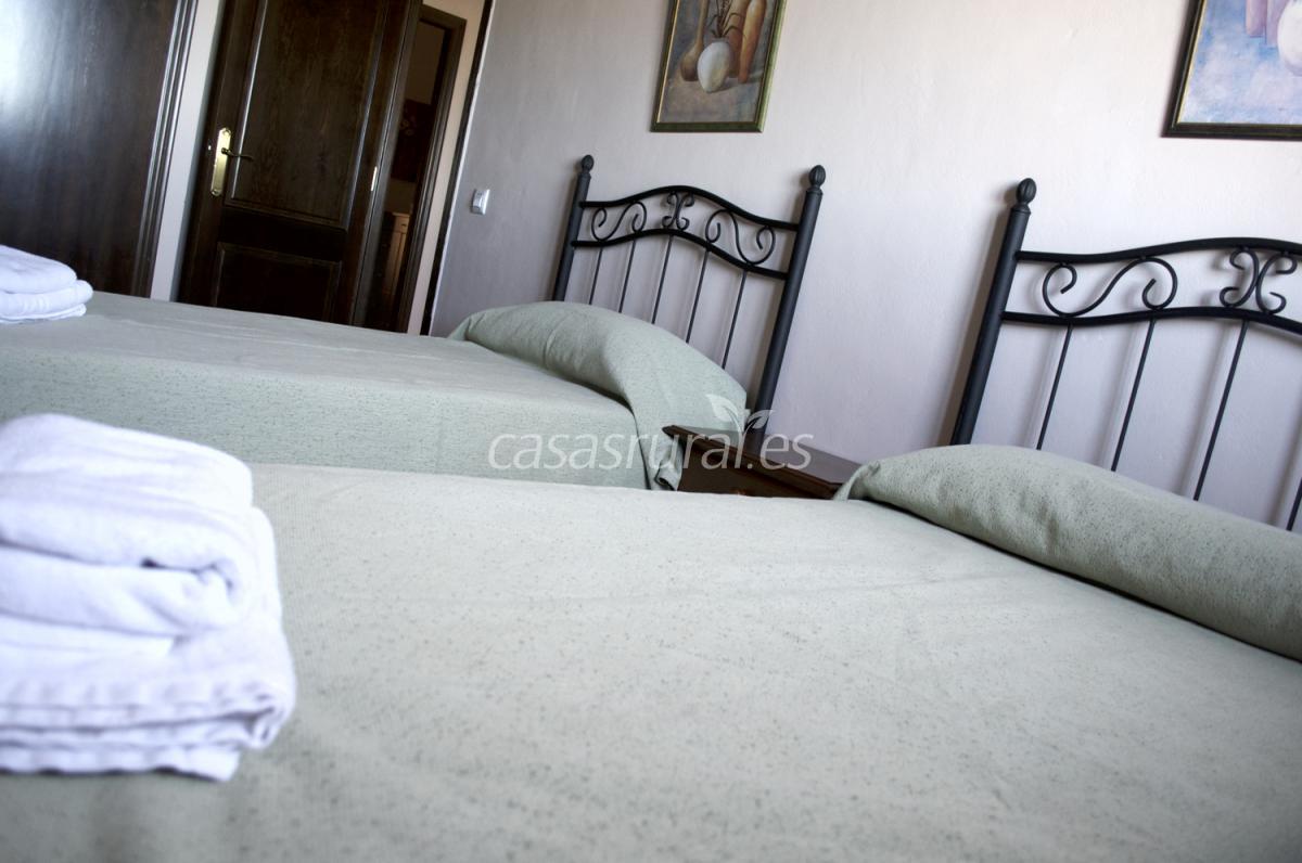 Consta de dos plantas, tres habitaciones (2 con cama de matrimonio y 1 con 2 camas), un cuarto de baño completo y aseo en planta baja.