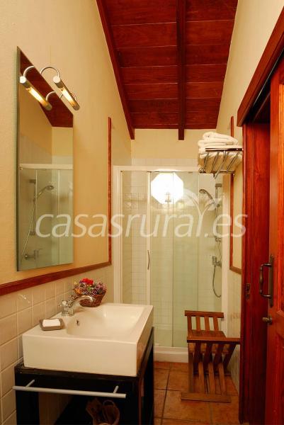 •cuarto de baño con ducha, secador de pelo.