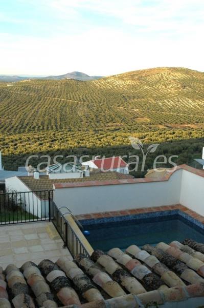 - Dos patios: uno con parra y otro con piscina y adarve, (mirador a magníficos olivares y sierras)