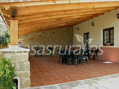 Porche y terraza con barbacoa y mobiliario de jardín.