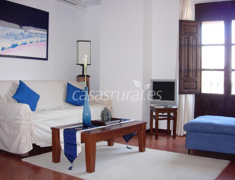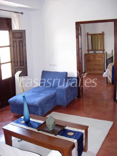 Tiene en total 7 habitaciones.2 suites con su propio salon y 3 habitaciones dobles con su baño completo y otros 2 habitaciones dobles.Cocina completa.2 comedores y dos salones comunes.Tiene dos patios y una terraza con una piscina y solar para tomar el sol.Jaen,Granada y su estacion de esqui, Malaga y las playas y Cordoba estan todos a 50 minutos de la casa.