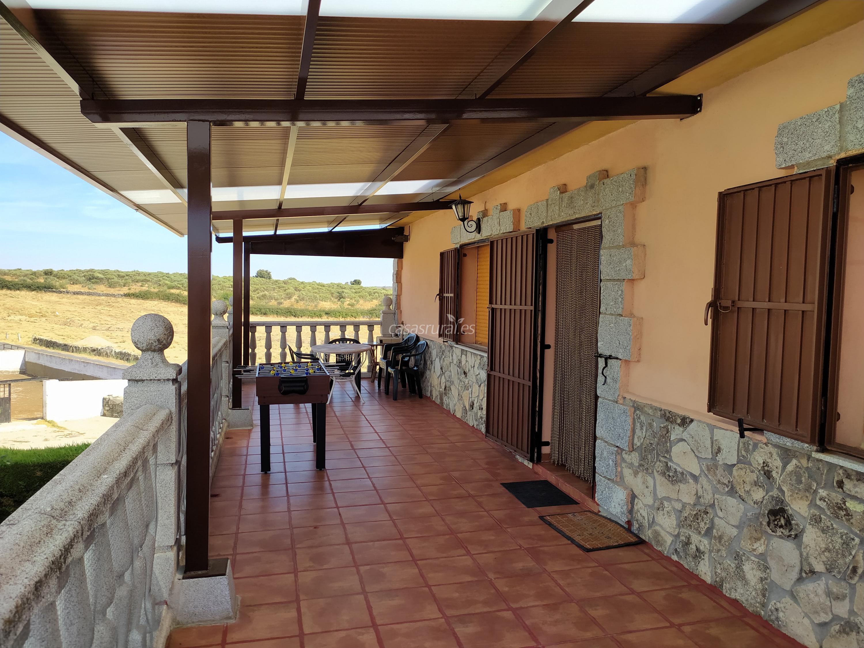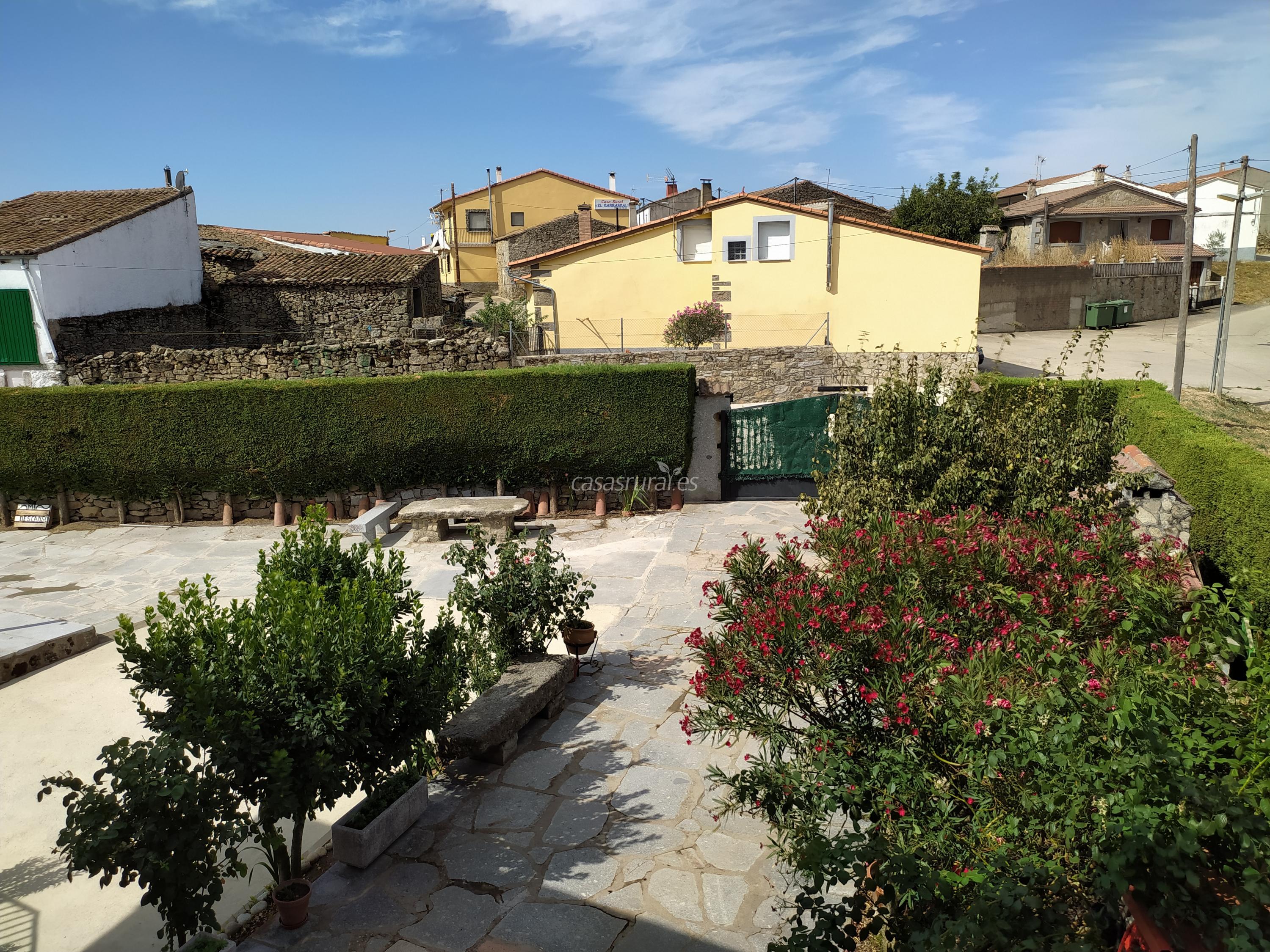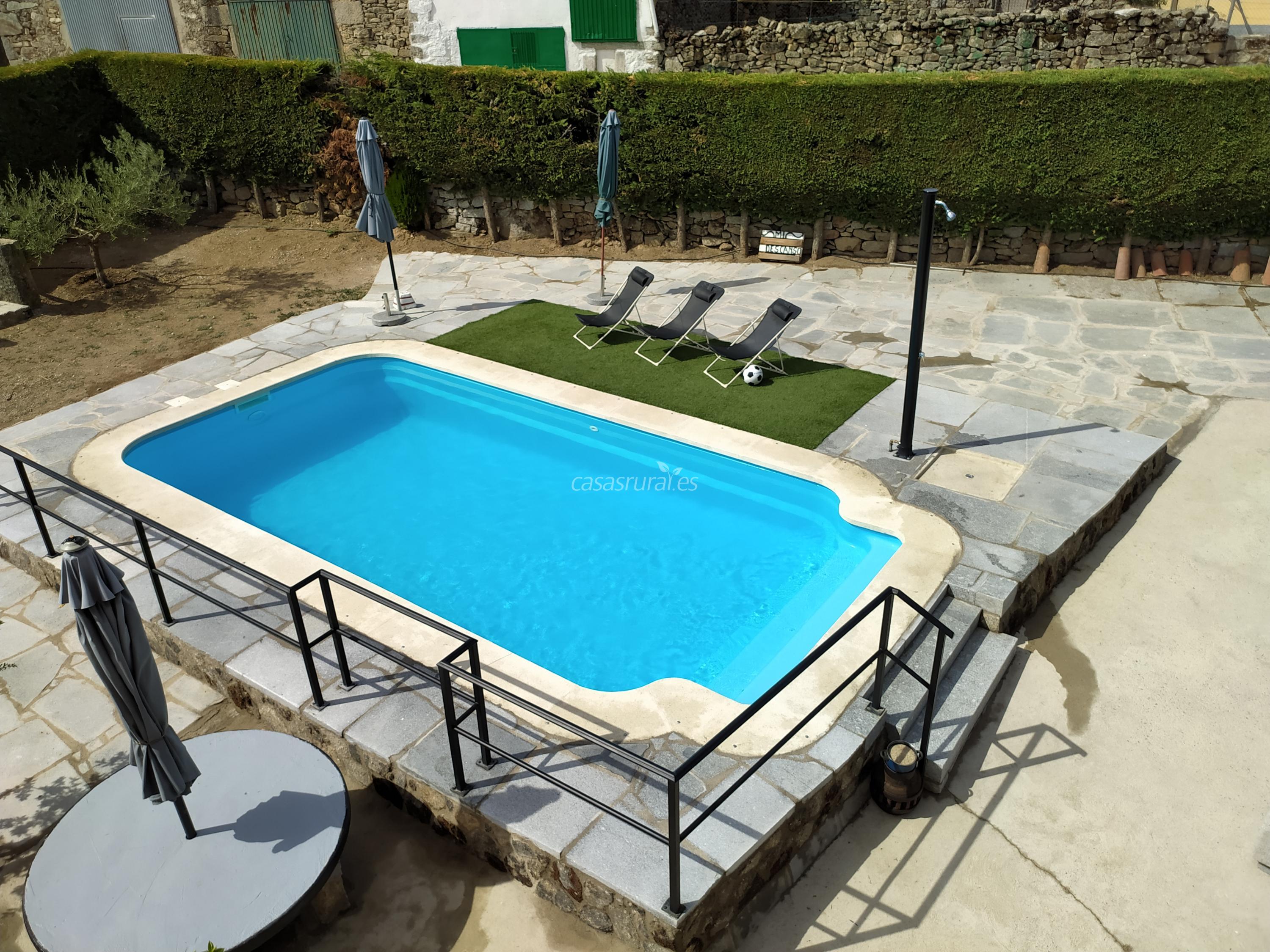 Nuestra Casa Rural Mi Descanso se encuentra ubicada en plena Sierra de Béjar. Dispone de un amplio salón-cocina, 4 habitaciones con un total de 9 plazas, 3 baños completos, una amplia terraza techada y una parcela con barbacoa cerrada para que así la podáis disfrutar durante todo el año, además de piscina. La Casa Rural está situada en la planta superior del edificio (la planta baja es nuestra segunda residencia), tiene entrada totalmente independiente por las escaleras de las fotografías y toda la superficie de la casa es totalmente plana.