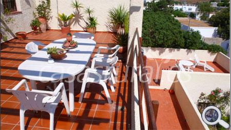 Cortijo de 2 plantas orientado al mar, con magníficas vistas desde cualquiera de sus 4 terrazas: un porche fresco y aireado, una pérgola donde disfrutar de espectaculares amaneceres y atardeceres y 2 terrazas solarium íntimas y tranquilas.