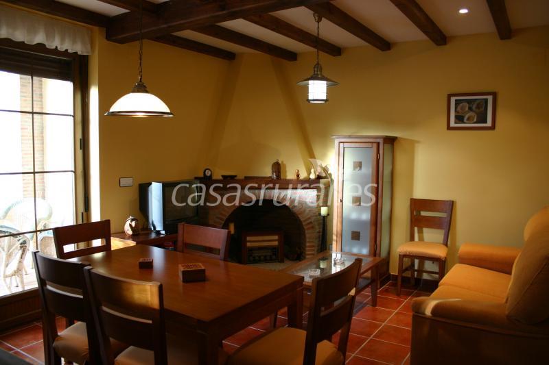 • En el salón destaca la preciosa chimenea de ladrillo rústico en uno de sus rincones. Muy confortable, con una gran mesa-comedor y sillas a juego, cómodo sofá, TV y programador de calefacción.