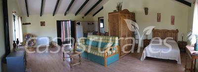 En una estancia tenemos el dormitorio, el salon con chimenea y sofa cama para niños, la cocina completa y el baño con columna de hidromasaje.