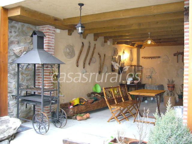 Patio con barbacoa y un bonito porche dónde inclusopuedes comer si lo deseas.
