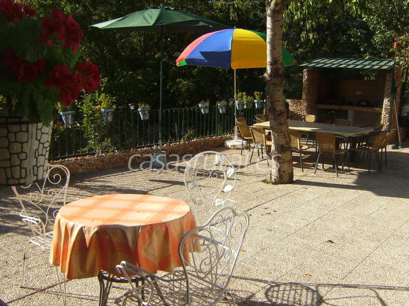 Tiene capacidad para 8 personas, 5 dormitorios, 2 salones cocinas, 2 baños, barbacoa, piscina privada, chimenea, zona de aparcamiento, cesped, etc