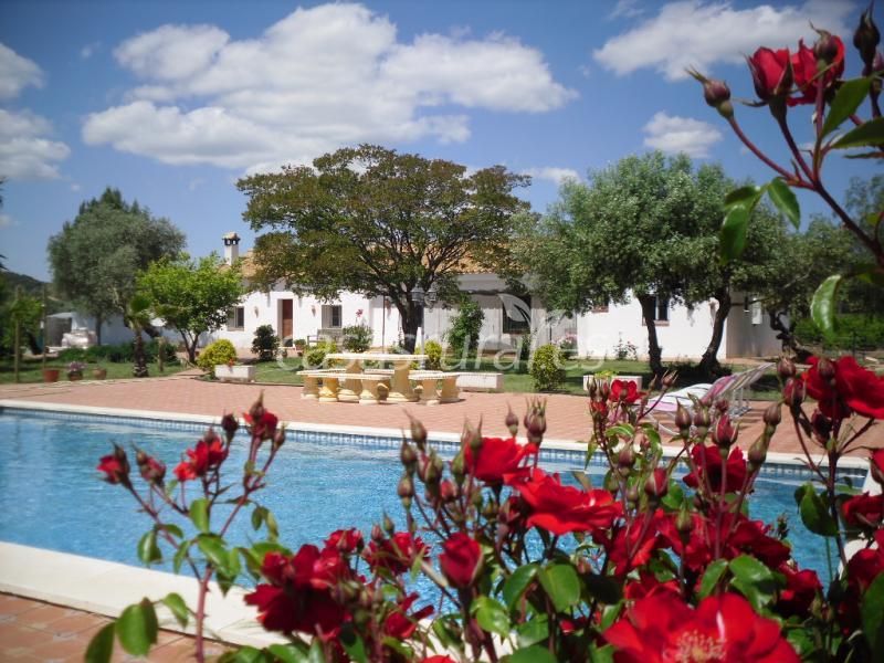 Es en el campo de Lora del Río, pero sólo a 10 minutos del pueblo. El cortijo se accede por un camino de 1.5 kilómetros de la carretera principal donde hay un grande, privado, con baldosas 12 metros x 6 metros de la piscina ( 1.2 m. - 1.9 m. de profundidad con más de 2 metros de pasos hundidos), con un patio alrededor de la piscina grande, fuera de la cocina y comedor.