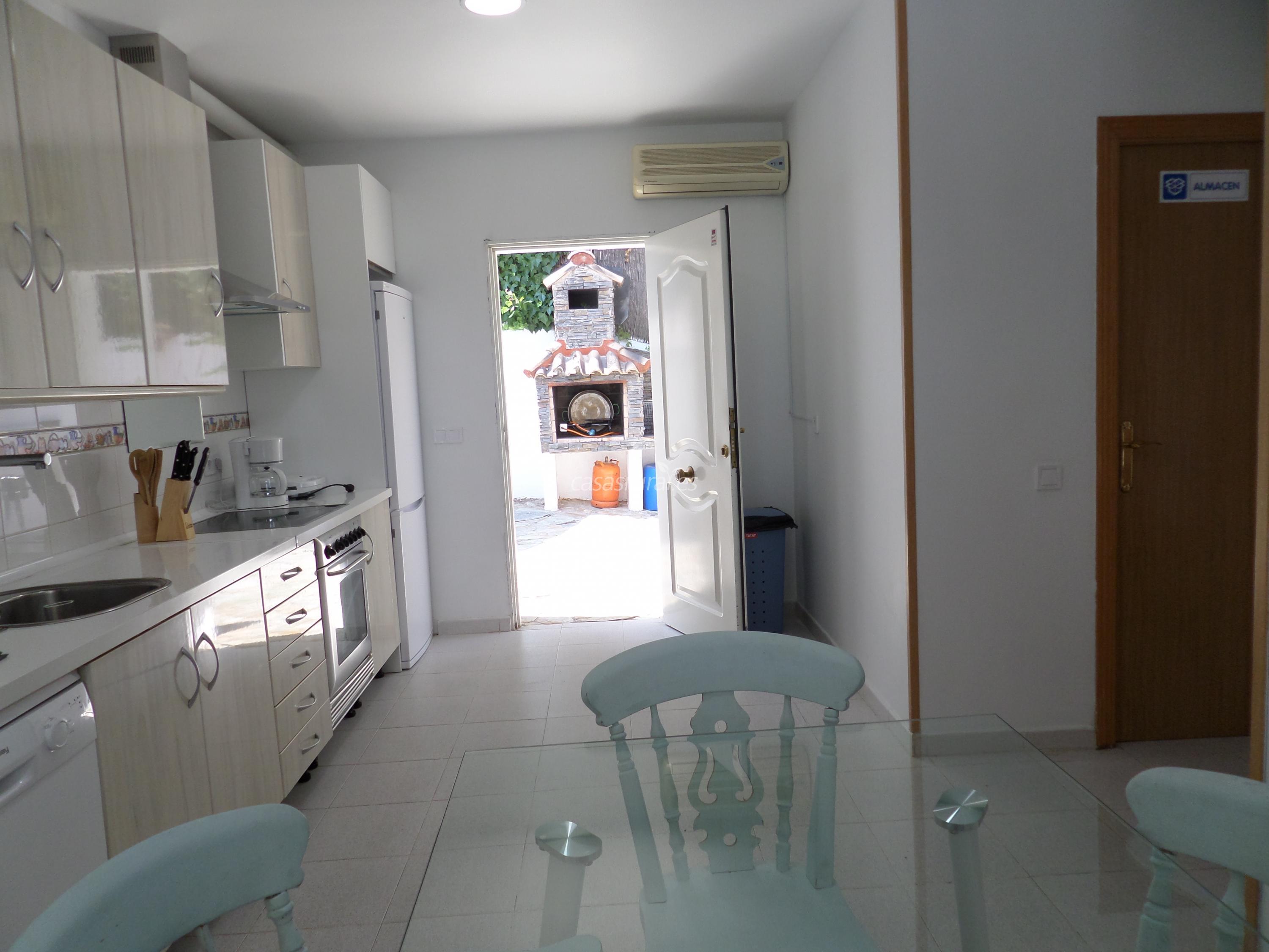 Cocina independiente con frigorífico, lavavajillas, microondas, vitrocerámica, horno eléctrico, lavadora y pequeños electrodomésticos: exprimidor de zumos, batidora, tostadora, cafetera