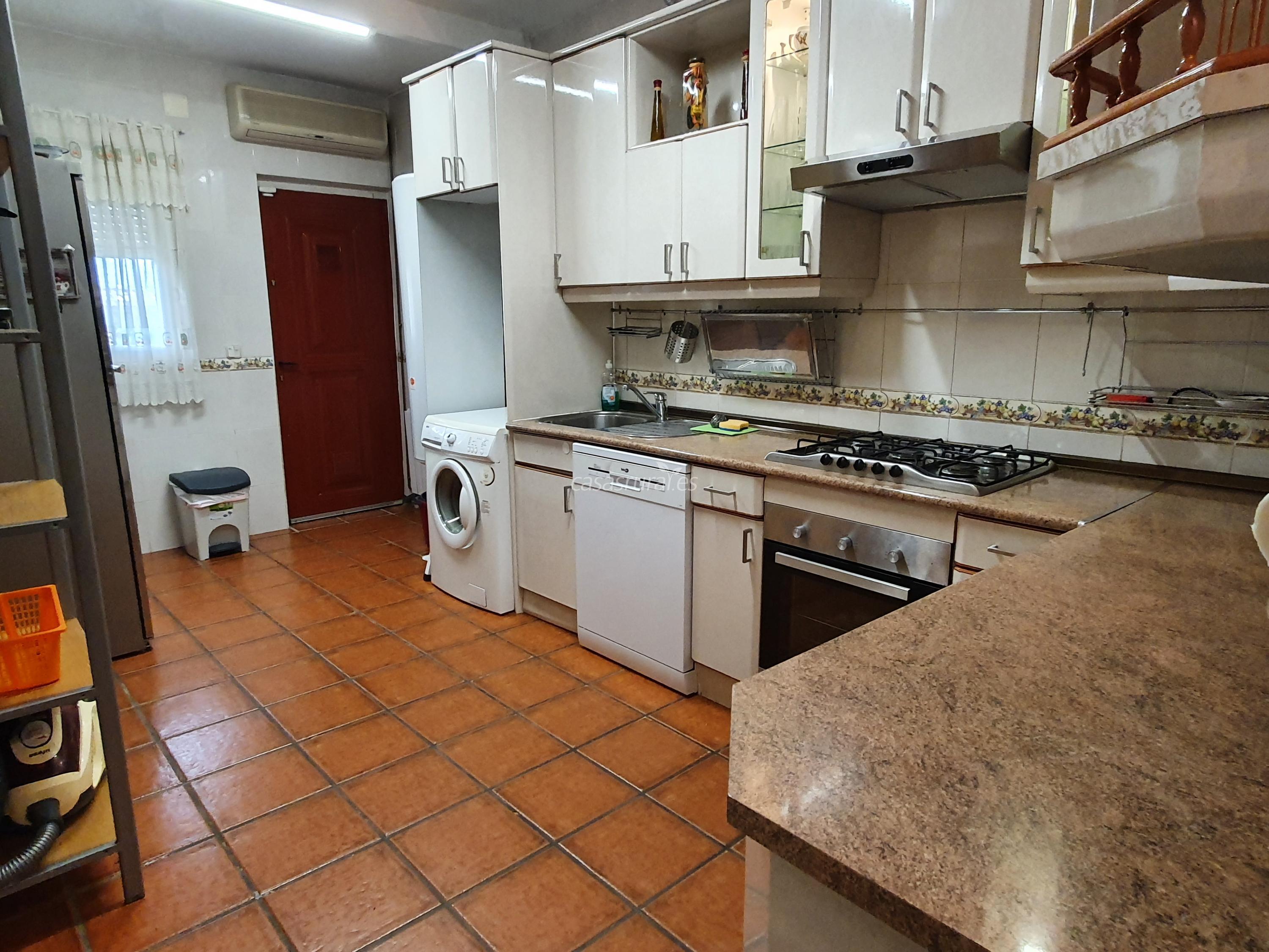 Cocina Independiente equipada con Electrodomésticos y Menaje: Microondas, Tostadora, Sandwichera, Exprimidor de Zumos, Batidora, Brazo Batidor, Picadora, Horno, Cocina de 5 fuegos, 2 Frigoríficos, Lavavajillas, Lavadora, Cafetera y Tabla de Planchar y Plancha.