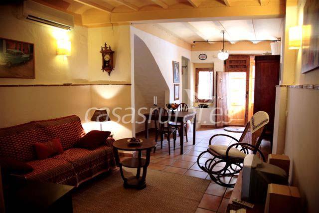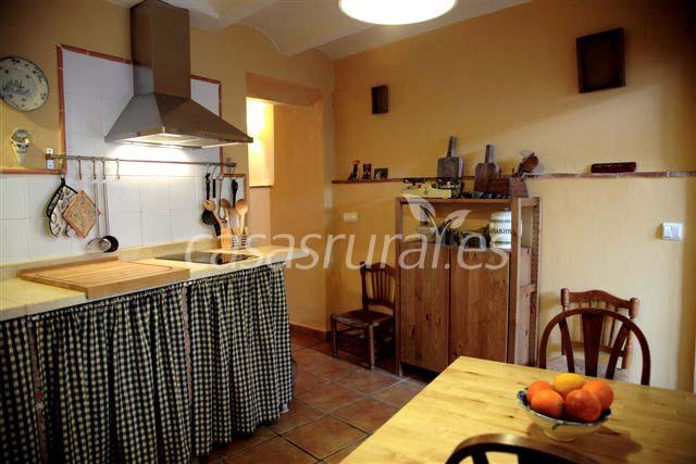En la planta baja está el salón con estufa de leña, la cocina completamente equipada, con lavadora y microondas, un baño y el patio trasero con paellero. Desde la antigua escalera de bóveda se accede a la primera planta donde hay un baño completo y dos habitaciones dobles, una de ellas con una pequeña terraza que da al patio y la otra con una amplia buhardilla con dos camas supletorias y espléndidas vistas al valle.