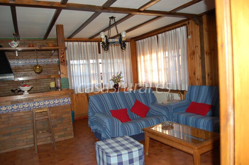 Está dotada de dos habitaciones dobles, amplio salón con sofá-cama, chimenea de leña, calefacción, agua caliente, baño completo, T.V., Cocina americana, microondas, lavadora, porche, hermoso jardín con barbacoa y aparcamiento dentro de la finca. Decorado rústico en piedra y madera.
