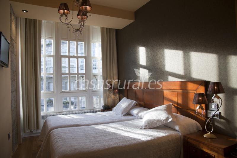 Está completamente equipado con seis habitaciones dobles, todas con cuarto de baño propio, teléfono, wifi, televisión, hilo musical, zona de reunión, cafetera, camas supletorias, cunas etc.. Las amplias habitaciones exteriores tienen vistas panorámicas a la Ribeira Sacra y a la plaza de piedra central del pueblo, en la que se llevan a cabo la mayor parte de las actividades culturales y de ocio que se realizan en la comarca, engarzada por sus encantadoras calles medievales que nos marcan el camino hacia el Castillo y nos envuelven en una atmósfera de historia y tranquilidad. Como elementos comunitarios, dispone de un acogedor espacio abierto interior con sala de estar de muy generosas dimensiones. Debido a su privilegiada situación, el hotel dispone de una zona de aparcamiento público visible en todo momento desde las habitaciones. En Casa de Caldelas vivimos de lleno la vida del centro de la villa, con la intimidad y el silencio que nos ofrece el aislamiento de sus enormes paredes de piedra típicas de la arquitectura gallega. El Hotel Casa de Caldelas cuenta con una hermosa cafetería con terraza donde podrá degustar la bica Rubio - incluida en el desayuno - y con el Pub Rubio en el que se programan conciertos nocturnos durante todo el año desde hace más de una década. Ambos negocios están situados a 50m. del hotel, que dispone también de una atractiva tienda integrada en la planta baja, en la que podrá encontrar todo tipo de artesanía propia de la zona así como productos agroalimentarios locales; bicas, vinos, quesos, licores, etc. En nuestra tienda pueden observar una pequeña exposición de esculturas, tallas y pinturas de diferentes artistas locales. Ello, unido a un personal acogedor y entregado, hace que todo sea acorde al original propósito de la casa: el bienestar. Un hotel rural ideal para viajes en pareja, escapadas en familia, amigos o sin compañía: siempre vivirá una interesante e intensa experiencia individual en Castro Caldelas.