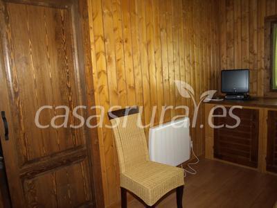 Es una casa totalmente construida en madera . Consta de dos plantas, en planta baja hay una habitacion doble con television ,cocina totalmente equipada, salon con chimenea y cuarto de baño con cabina de hidromasaje.