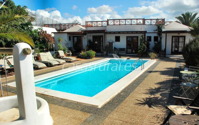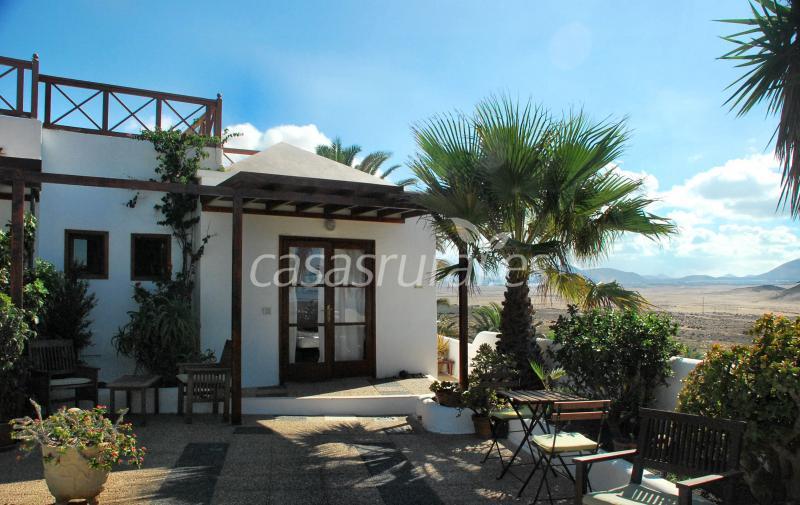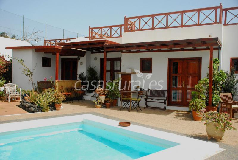 una casita blanca rodeada de un jardin floreado, con una piscina , un salon comedor a compartir con los otros huespedes . Esta situada en un pequeño pueblo lejos de la zona túristica, con vista a la puesta del sol sobre el mar .... ambiante acogedora.