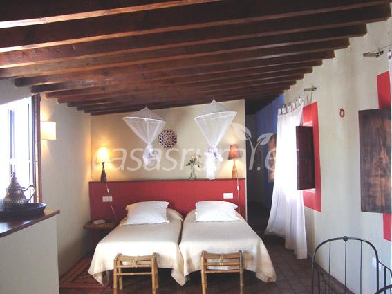 La junior suite (31 m²) abre a nuestra maravillosa terraza-azotea con sus espectaculares vistas. Dispone de 4 camas (90 cm x 200 cm) en un mismo espacio. Dos de ellas están puestas juntas (como una cama doble) en un extremo de la habitación y las otras están colocadas en forma de L en el otro extremo. Se puede poner una cama adicional.