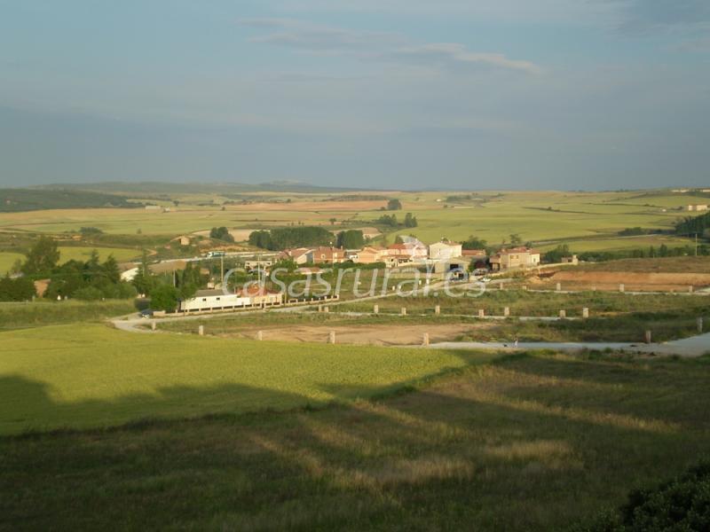 Girar a la izquierda atravesar el pueblo en dirección Burgos,y antes de coger el puente que nos lleva a la Autovia, a nuestra izquierda, vemos los pivotes blancos y verdes, giramos con cuidado no entre nadie de la Autovia y desembocamos en la rotonda con la cruz.