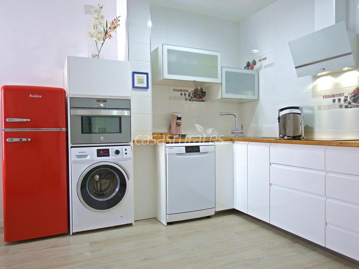 - Cocina totalmente equipada (frigorífico, vitrocerámica, horno-microondas, lavadora, lavavajillas, depuradora de agua por ósmosis, cafetera, juego de café, batidora, plancha-tostadora, vajilla y cubertería para 12 comensales, batería de cocina...), kit de desayuno (con azúcar, infusiones, cápsulas de café, café soluble descafeinado/normal y cacao instantáneo), kit básico de comida (botes con pasta, arroz y fideos; algunas especias básicas, sal, aceite y vinagre) y botella de agua.