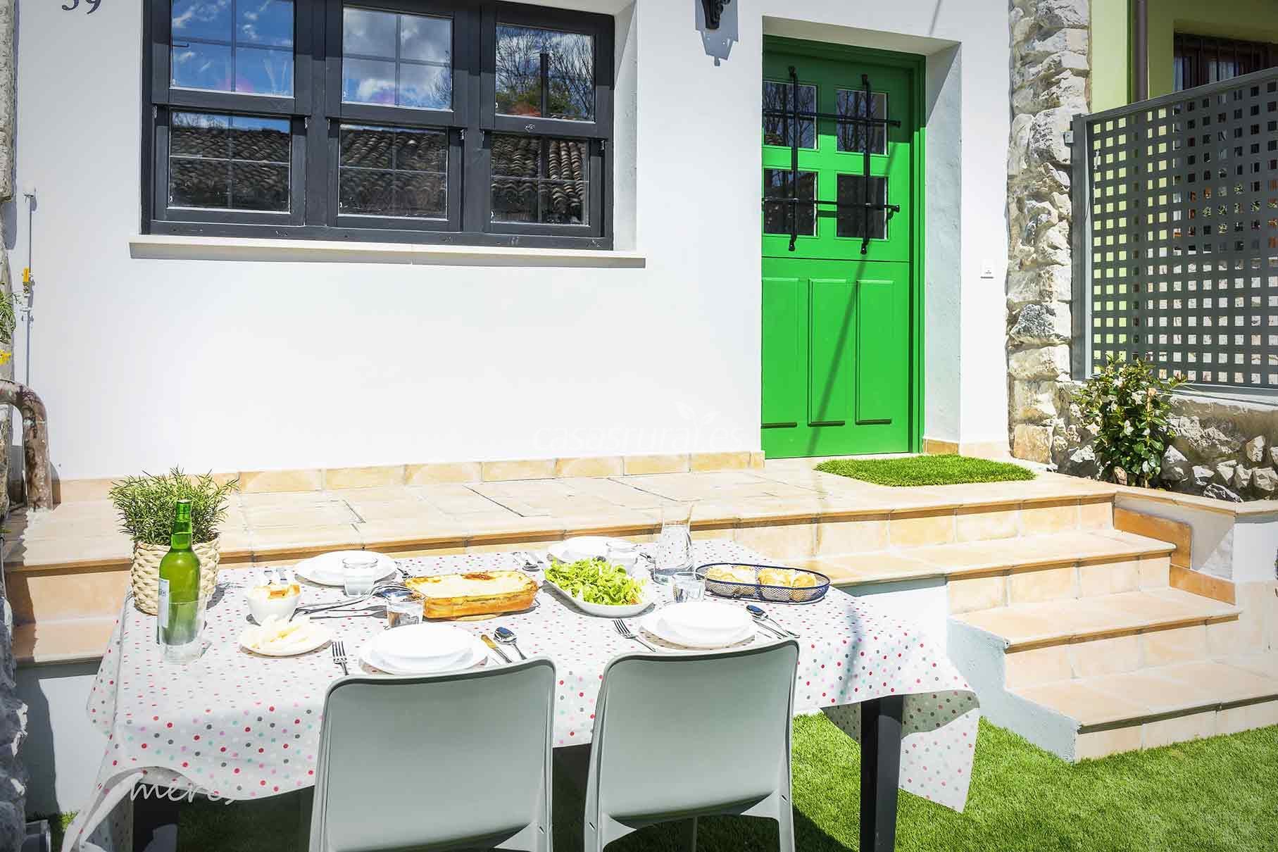 El alojamiento rural vacacional La Memoria tiene un pequeño jardín con mesa y barbacoa y una terraza al noroeste para aprovechar el sol de la tarde en verano.