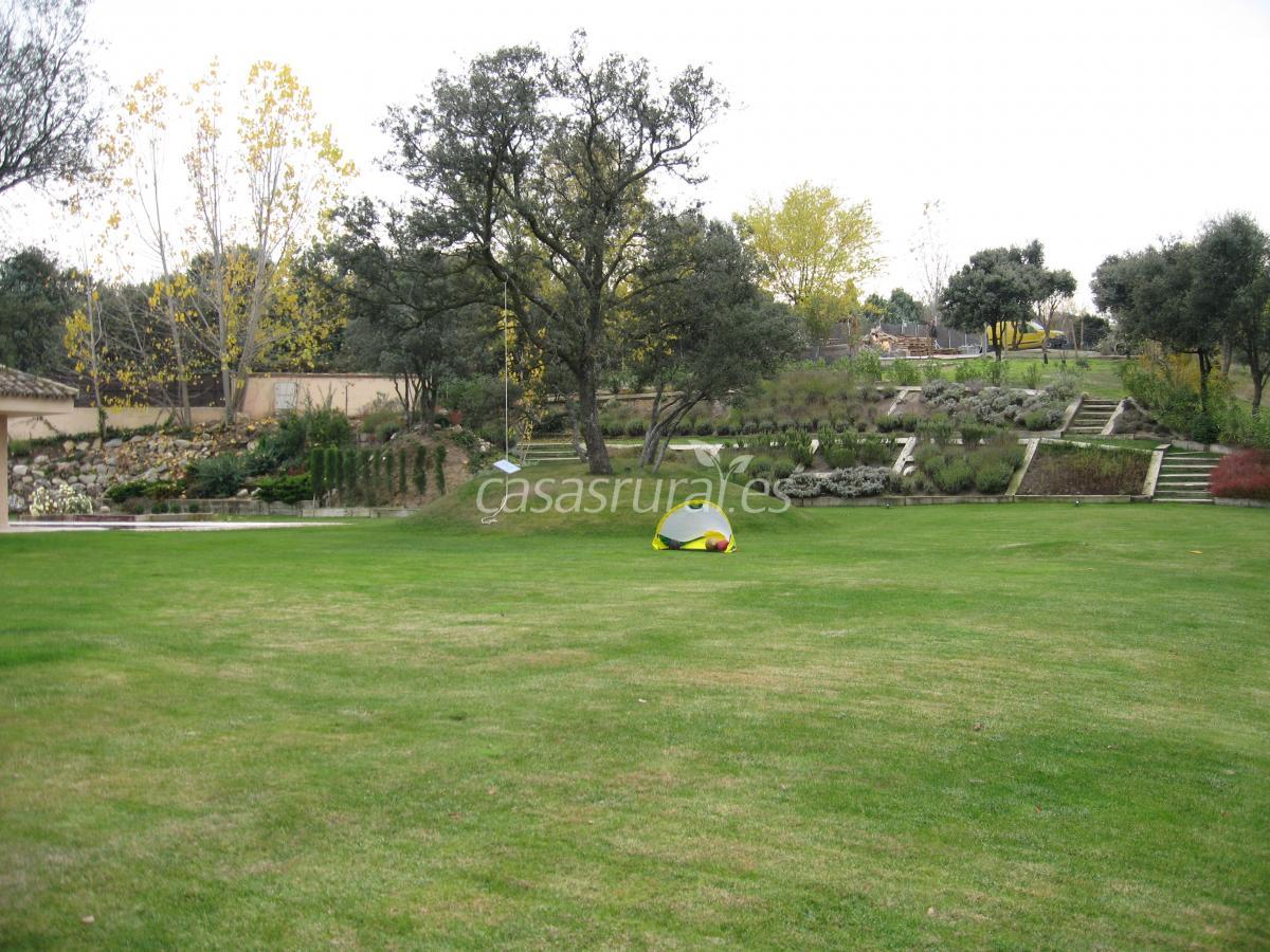 Una piscina de 20 por 3 metros bordea uno de los laterales de la casa, por lo que la diversión está asegurada en los días de calor. La casa cuenta con varios porches donde descansar al aire libre, provistos de tumbones, sillas, mesas y barbacoa. Los porches son cubiertos, por lo que la lluvia no podrá estropearte el día. Puedes jugar en uno de ellos con nuestra mesa de ping-pong, los más pequeños podrán jugar en la mesa-banco. Además, cuenta con un amplia zona reservada para eventos, celebraciones o deportes, y una pequeña isla de tranquilidad con hamaca y columpios.