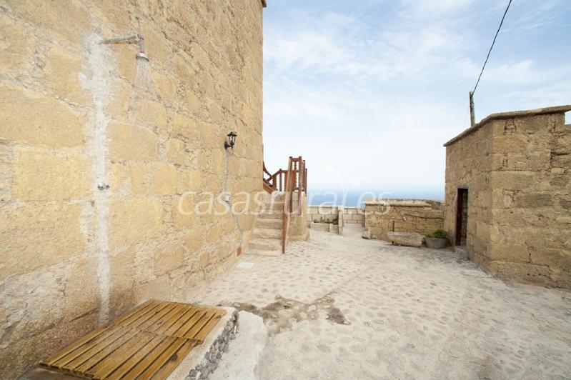 Las casa de Las Vigas se articula entorno a un patio empedrado, que es una técnica similar al adoquinado, pero en donde se emplea piedra natural de la zona, en este caso volcánica del propio barranco de Las Vigas acarreada por bestias de carga.