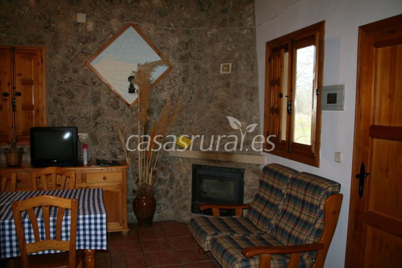 salon con cocina partido por barra americana -totalmente equipadas menaje de cocina, frigorifico,microondas,tv, lavadora, agua caliente, chimenea de leña, calefacion central, barbacoas, sabanas ,mantas