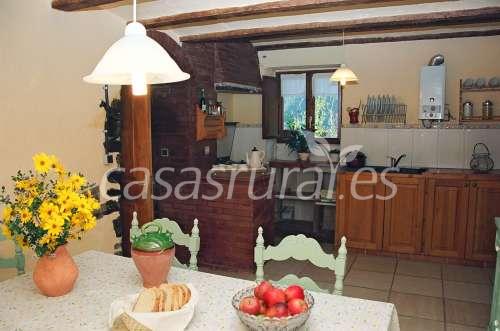 Cocina- comedor equipada con todos los utenzilios necesarios para cocinar i electrodomésticos: cocina-horno, nevera, lavadora...