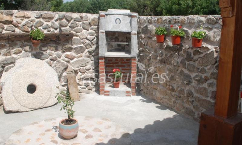 El jardín cuenta con porche y salón anexo también con chimenea.