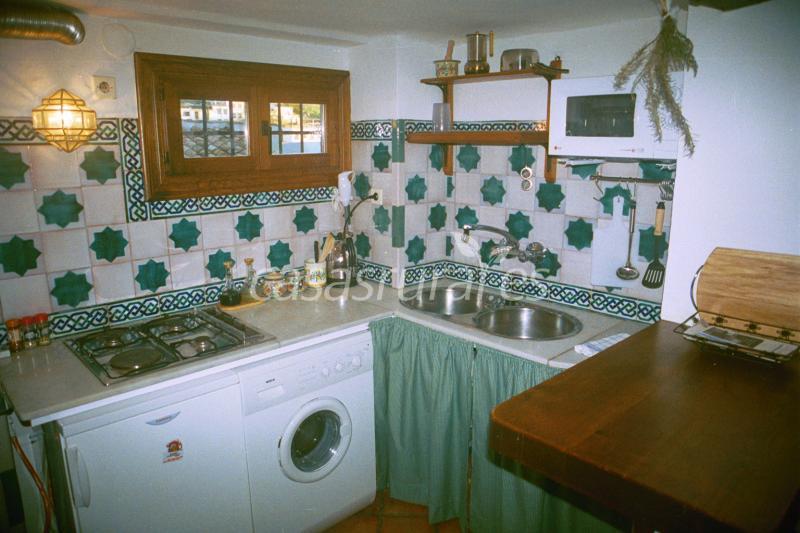 Cocina totalmente equipada (hornilla con tres fuegos de butano y una placa eléctrica, frigorífico, lavadora-secadora, batidora, cafetera, utensilios de cocina, plancha y tabla...)
